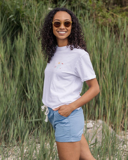 The Santosa Short is made in Organic Cotton blend and washed for that vintage feel. Pair with one of our shirts or hoodies for that classic summer vibe.