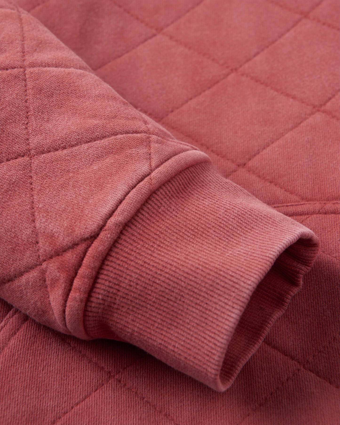 - High neck lined sweatshirt, quilted throughout. Garment Dyed for a vintage feel, some natural colour highs and lows may occur.