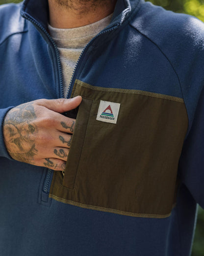 - Mid-weight 1/2 neck sweatshirt with a recycled polyester ripstop chest pocket.