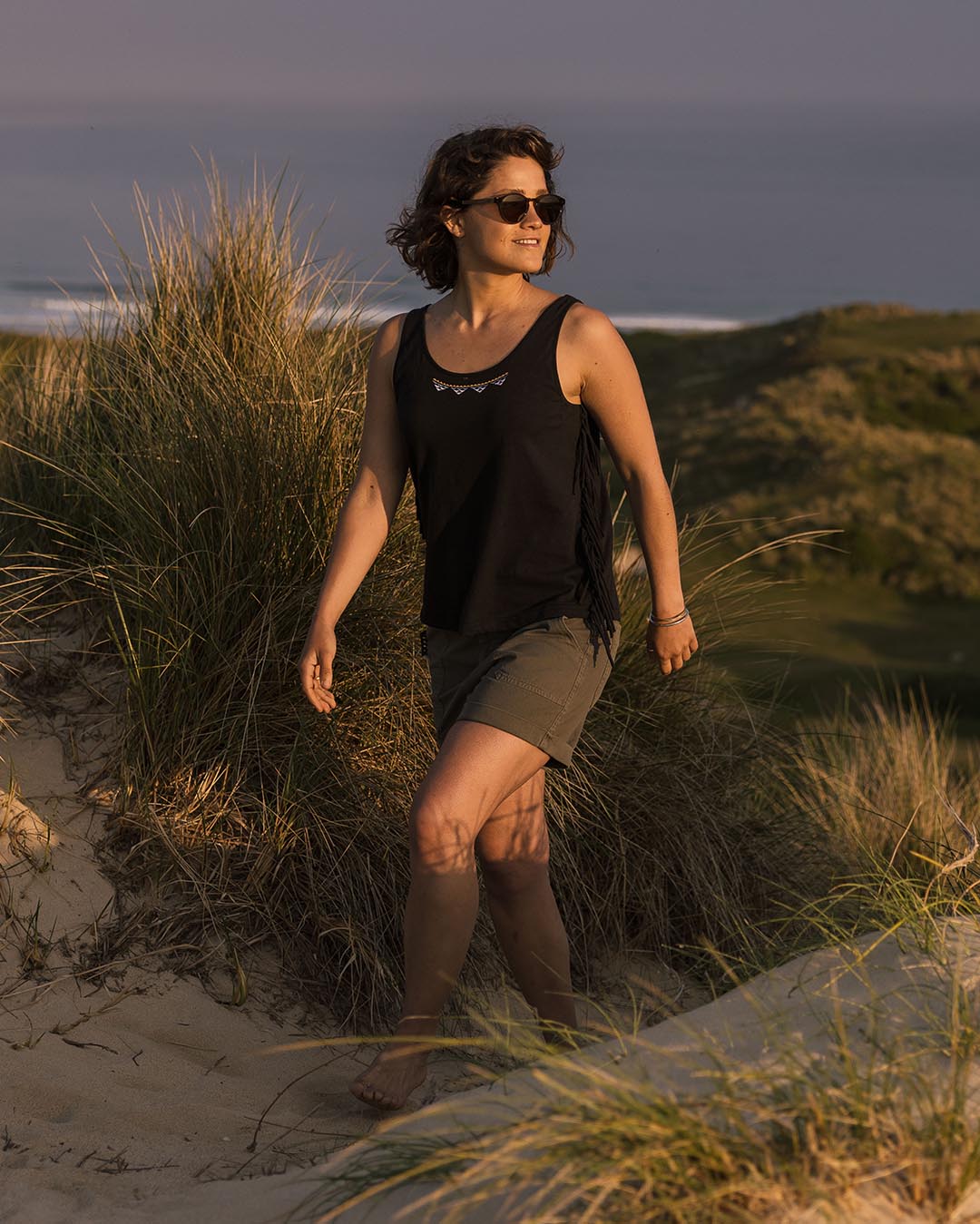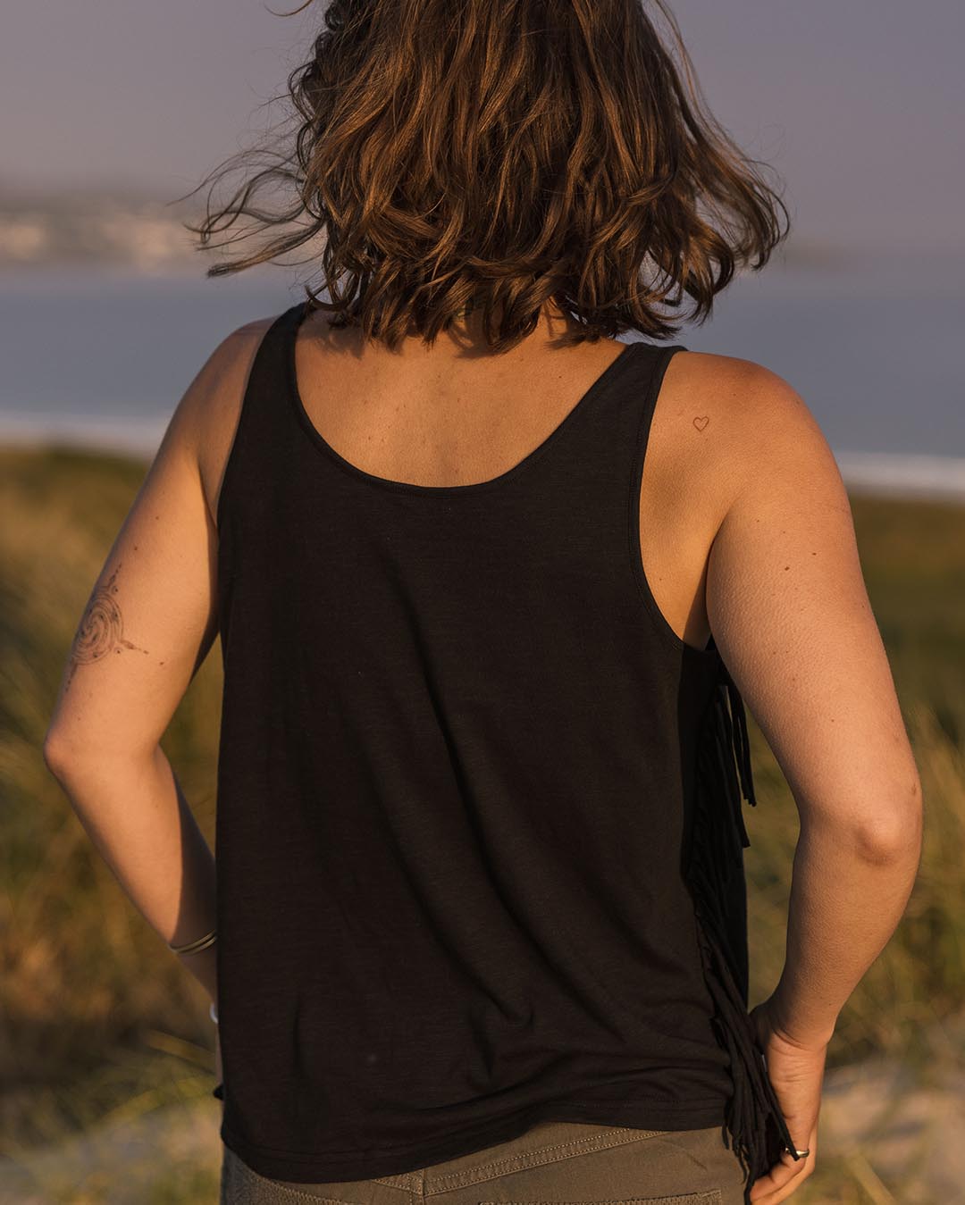 Grab a little Boho feel in the Poppy Tassel Vest. Featuring subtle embroidery detail and side seam tassels, loose comfy fit and soft, textured fabrication. Made in Recycled and Organic Cotton.