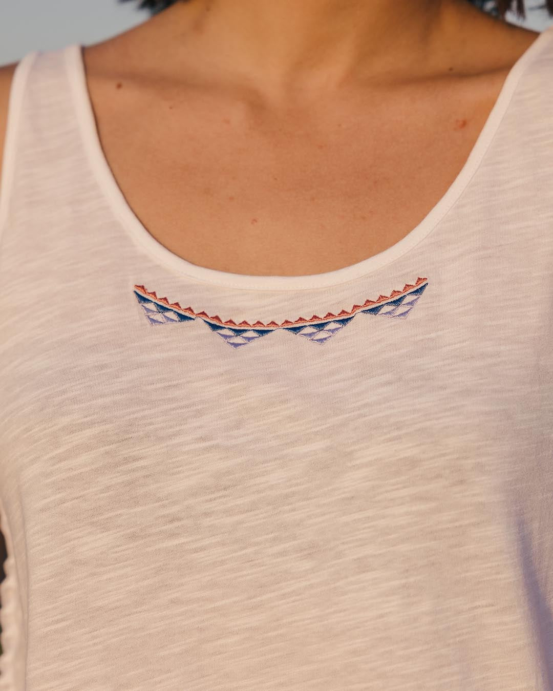 Grab a little Boho feel in the Poppy Tassel Vest. Featuring subtle embroidery detail and side seam tassels, loose comfy fit and soft, textured fabrication. Made in Recycled and Organic Cotton.