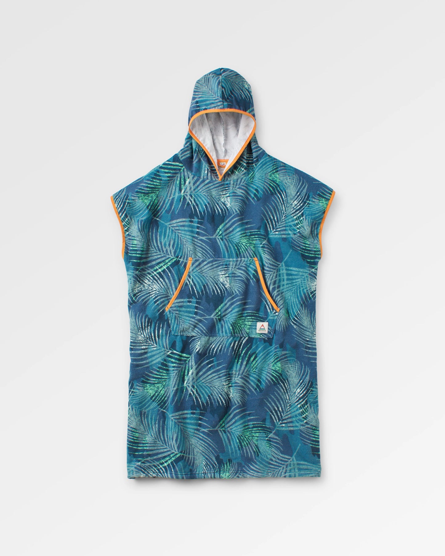 - Towel poncho with a hood and patch pockets.